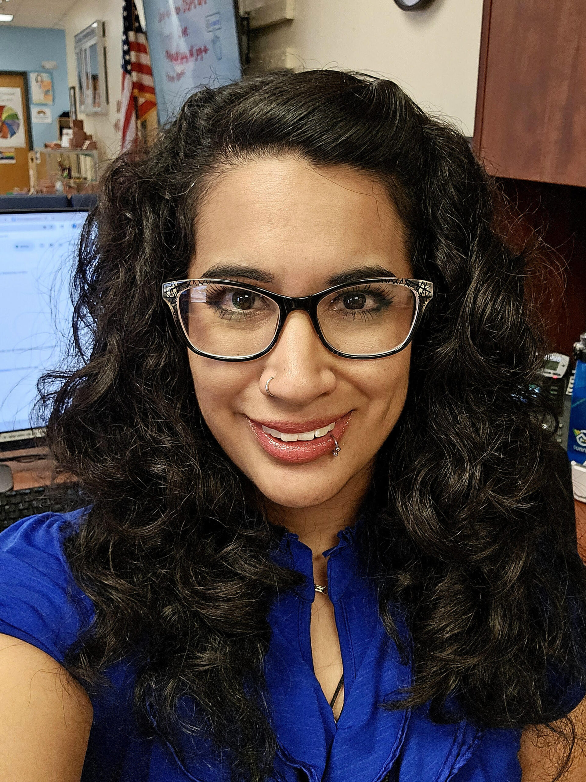 Things that make me smile: Fun times with my family and close friends. Hearing our students speaking Spanish in their first year or showing kindness and compassion to others that they recognize as different from themselves. I am grateful for a career that I love, that supports our students, families, and staff and community.